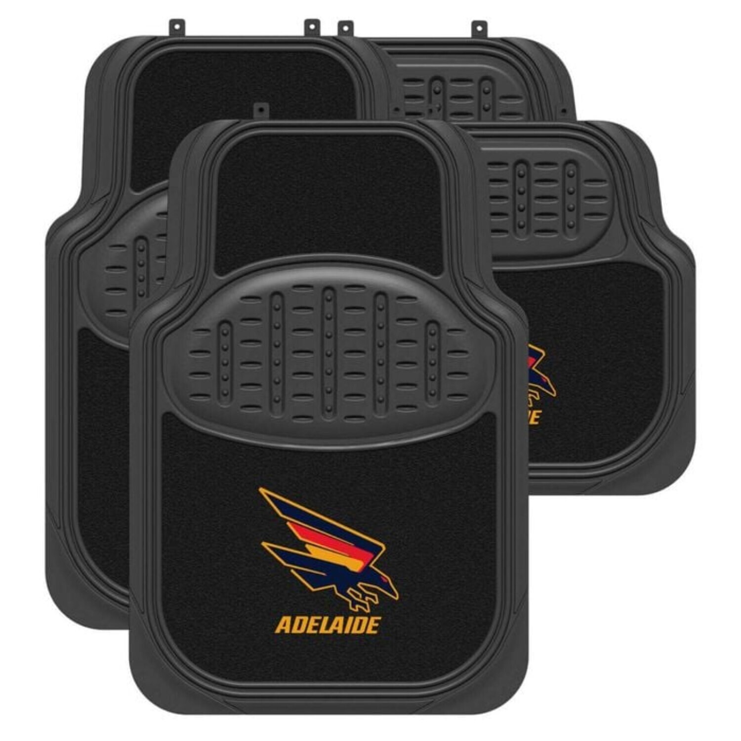 Take your club pride on the road with the Adelaide Crows Car Floor Mats. Whether you are driving to the stadium on match day or just heading to work, these mats turn your car's interior into a dedicated supporter zone. The sleek black design ensures they match any vehicle's aesthetic, while the prominent club logo on the front mats provides that unmistakable mark of a true fan.
