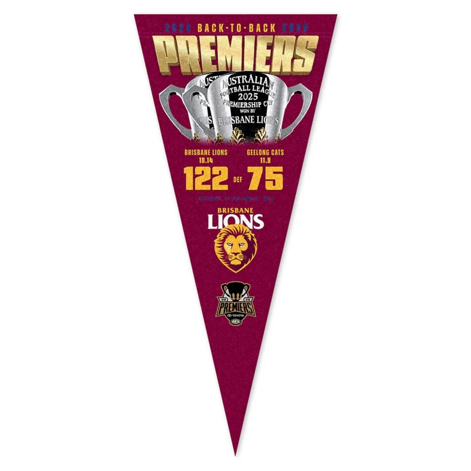 Brisbane Lions 2025 Premiers Score Felt Pennant Specs