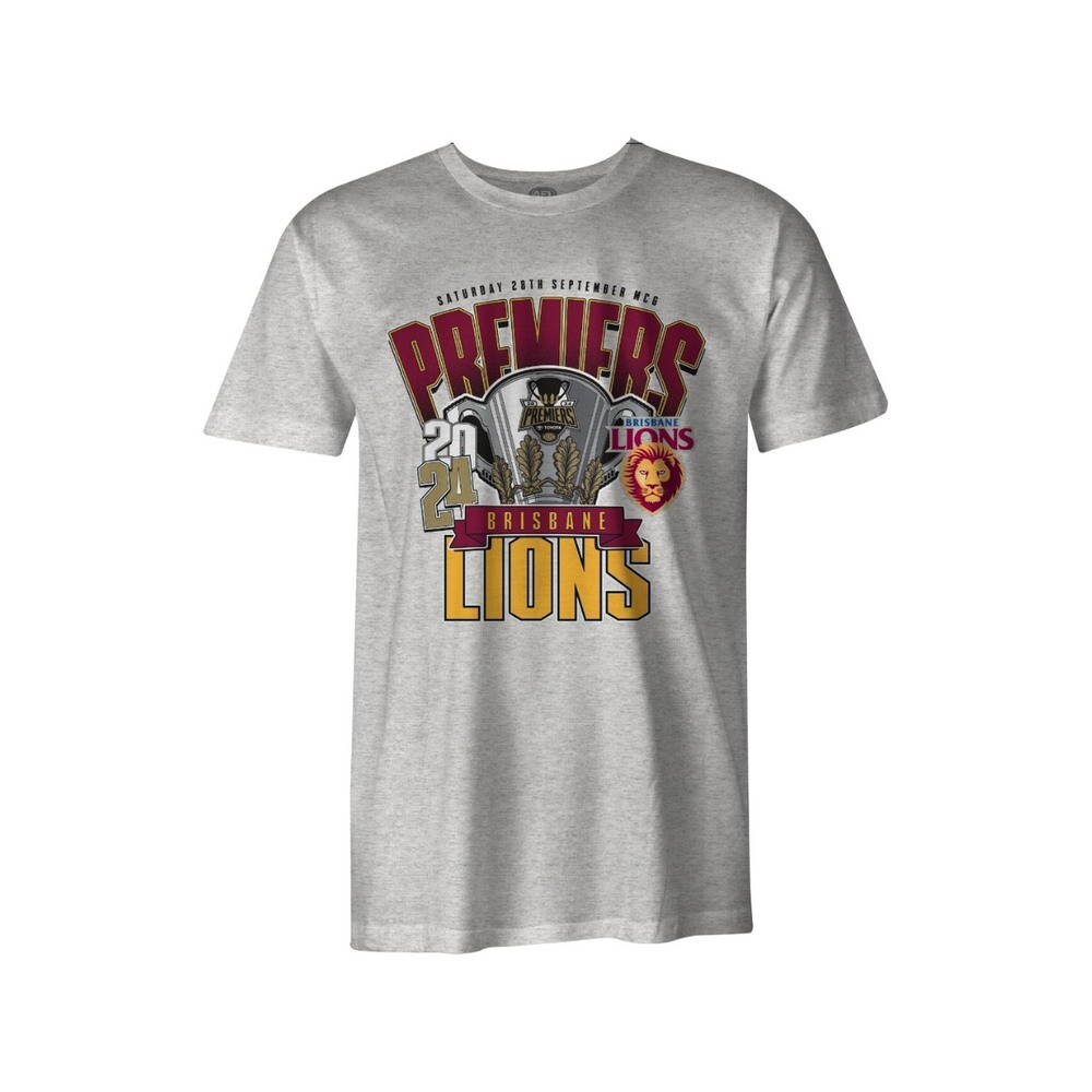 Brisbane Lions 2024 Premiers Youths Grey Tee Specs