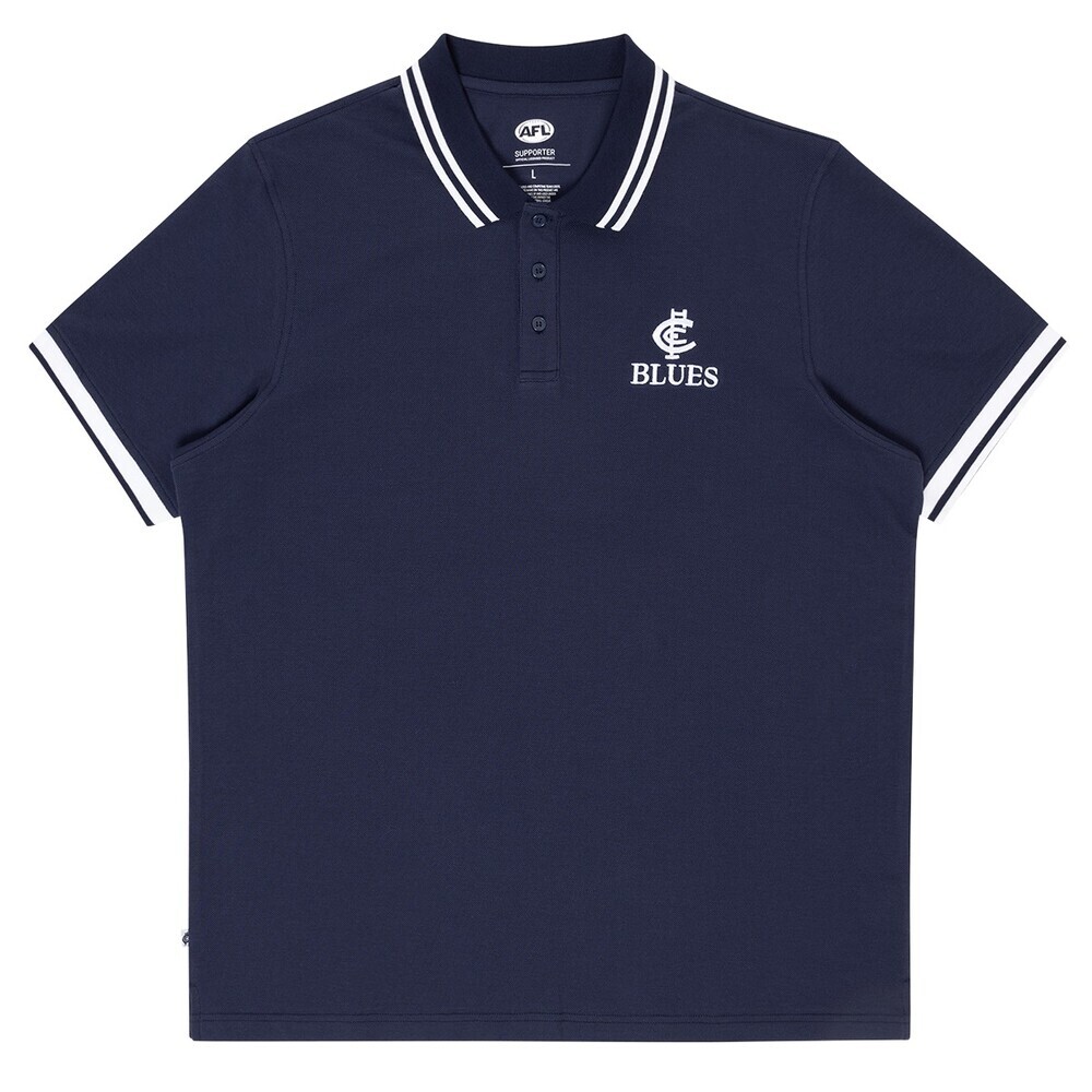 Smart, versatile and full of team pride, the Carlton Blues Mens Cotton Pique Polo is a must-have staple for every dedicated supporter.