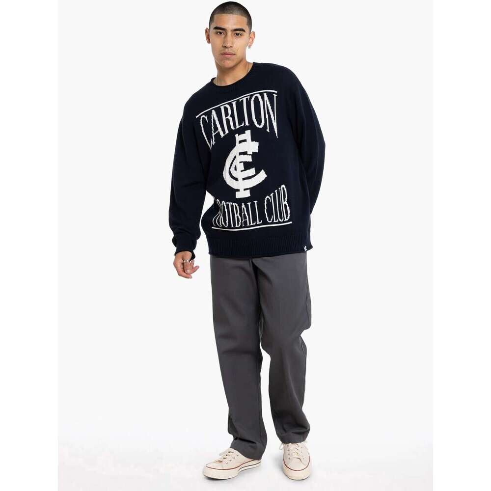 Stay warm while proudly backing your club with the Carlton Blues Mens Supporter Knit Crew. Designed for dedicated fans, this classic crew neck knit combines timeless style with bold team pride, making it a standout piece for the cooler months.