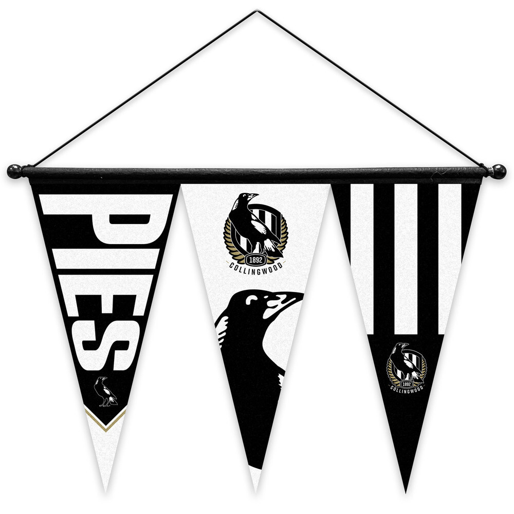 Whether you're celebrating a big win or proudly displaying your lifelong loyalty, the Collingwood Magpies Set of 3 Pennants is a must-have piece for any dedicated supporter.