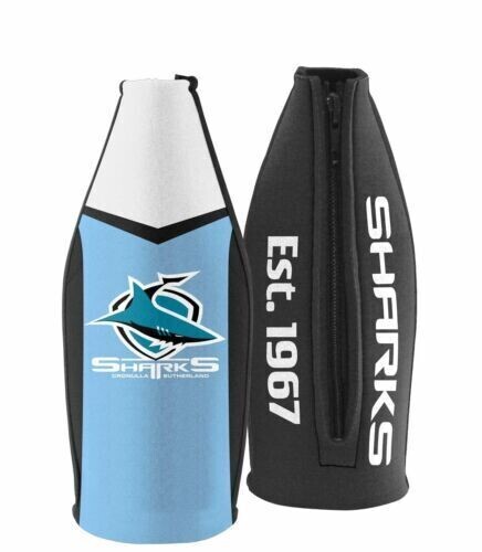 Official NRL Merchandise Cronulla Sharks Official NRL Tallie Cooler; 5mm Neoprene material with heat seal - Supplied with zipper and carry strap - Sublimated print features team logo & jersey design - Suitable for all standard sized long neck & wine bottles - Official NRL Merchandise - Inner 4, Outer 51