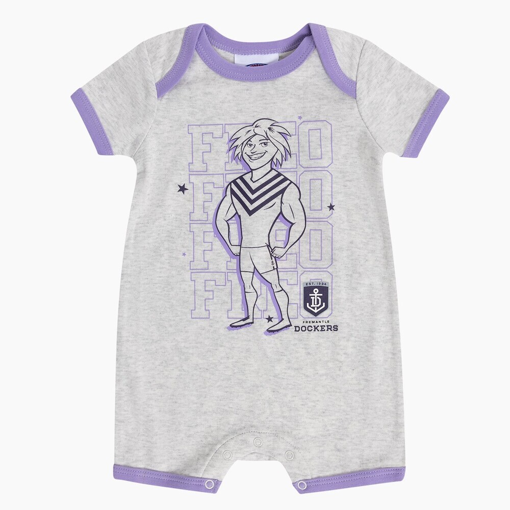 Kickstart your little one's footy journey in style! This Fremantle Dockers Baby Play Romper is crafted with love and passion, making it a must-have for every tiny fan.
