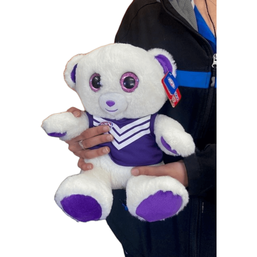 Super soft, irresistibly cuddly, and full of team spirit - the Fremantle Dockers Large 30cm Sparkle Bear is the ultimate companion for fans of all ages. Whether it's sitting proudly on a bed, shelf, or couch, this adorable bear brings warmth, charm, and club pride to any space.