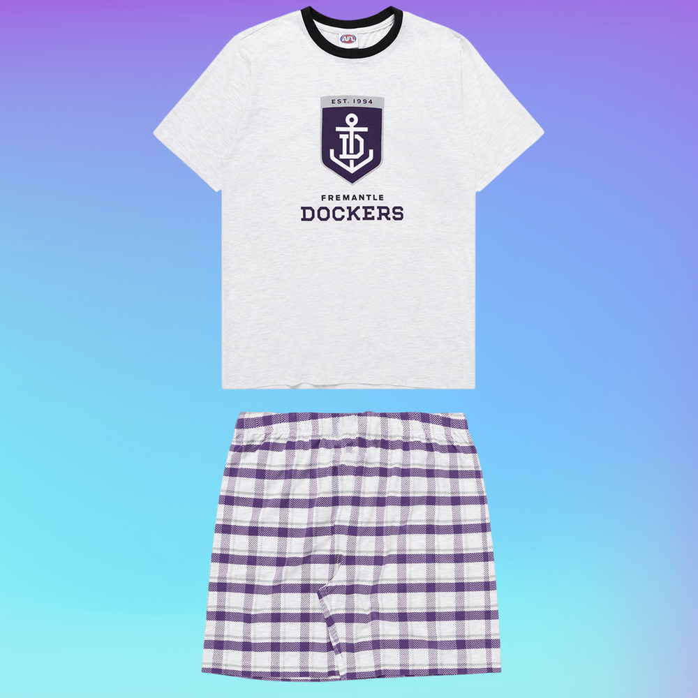 The kids will sleep in comfort with the Fremantle Dockers Youths Check PJ Set. This set includes a premium sleep shirt and matching check shorts, both designed to provide the perfect night's rest while showcasing your young fan's passion for their club.