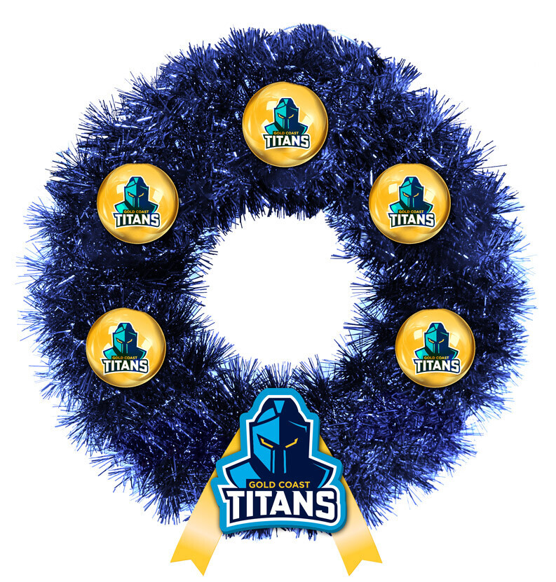 Celebrate with a touch of Titans pride using the Official Gold Coast Titans NRL Christmas Wreath.