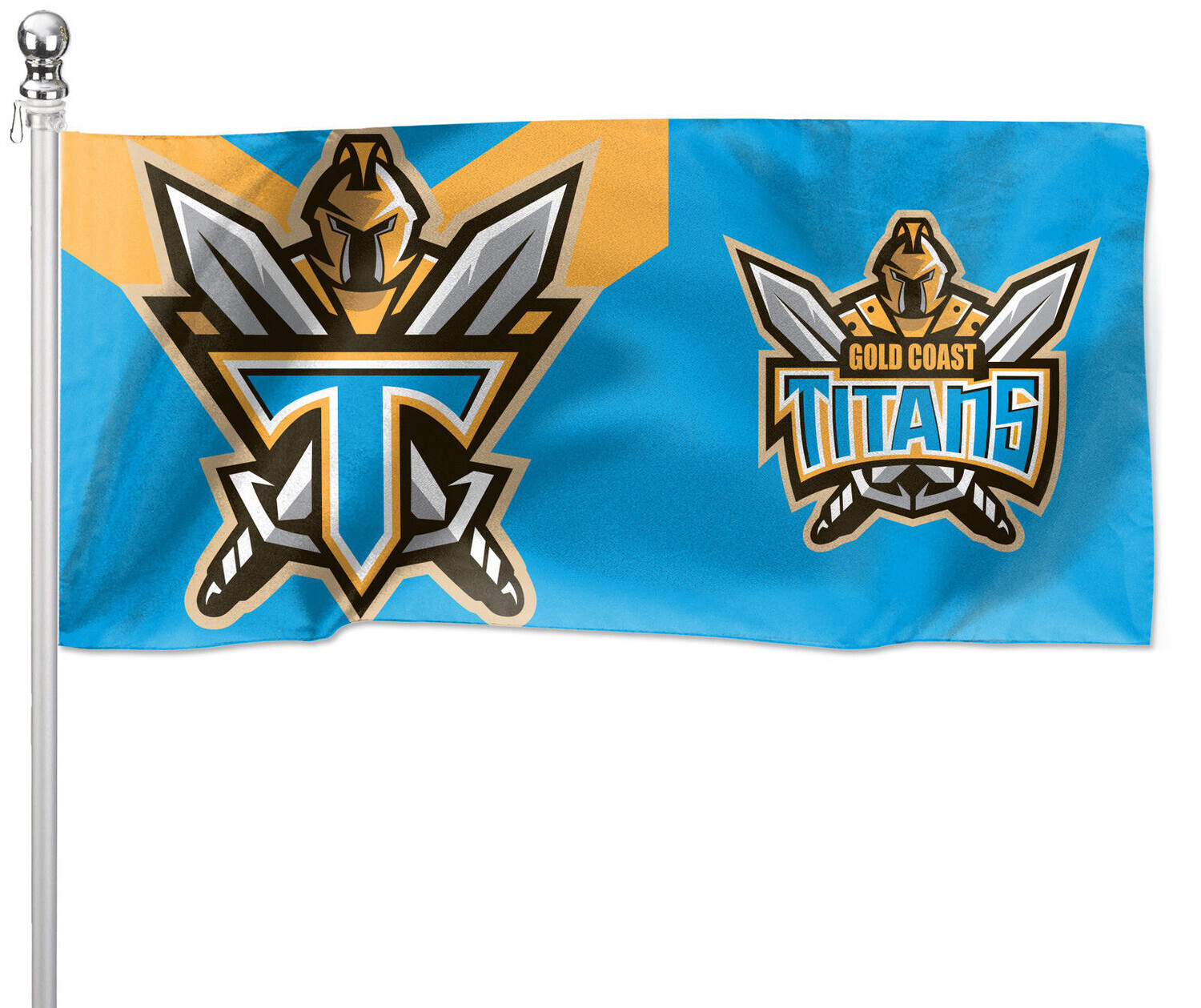 Official NRL Gold Coast Titans Flag Pole Flag. Make the ultimate supporter statement with the Gold Coast Titans Flag Pole Flag. The durable, all weather flag features to Gold Coast Titans Team colours and logo, making it the ideal outdoor flag. Dimensions: 90cm * 180cm NRL Team: Gold Coast Titans Product name: Official NRL Gold Coast Titans Flag Pole Flag Return to the Gold Coast Titans NRL store online