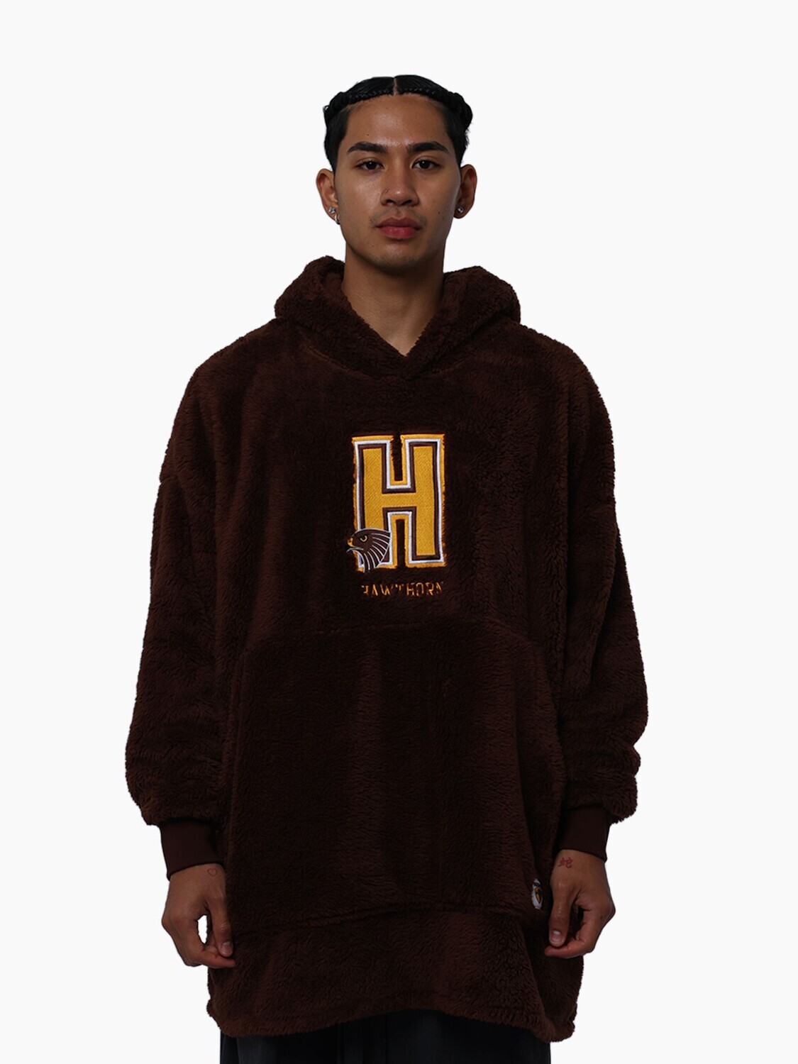 Say goodbye to the winter chill with the ultimate fan essential: the Hawthorn Hawks Adults Sherpie. Blending the enveloping warmth of a plush blanket with the convenience of an oversized hoodie, this loungewear staple is built for hardcore relaxation. The front proudly boasts a striking plastisol print of your club's insignia, ensuring your team spirit stays loud even when you're totally bundled up.