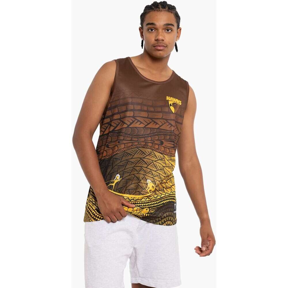 Celebrate culture, represent your club, and elevate your training in the Hawthorn Hawks Indigenous Training Singlet.