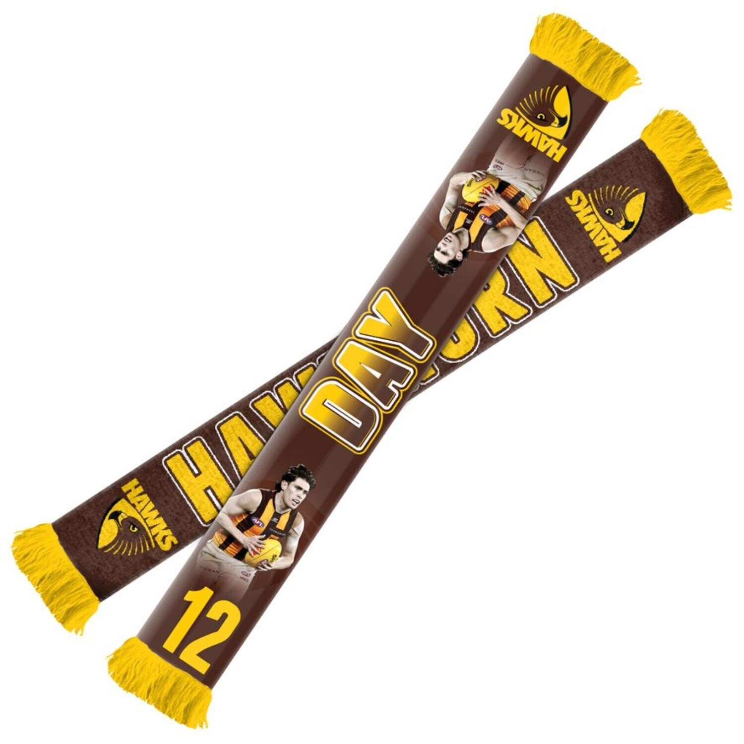 Show your support in style with the official Hawthorn Hawks Will Day Player Scarf. Designed for passionate fans, this scarf features a vibrant sublimated image of your favourite player on one side, with a classic knitted team design on the reverse.