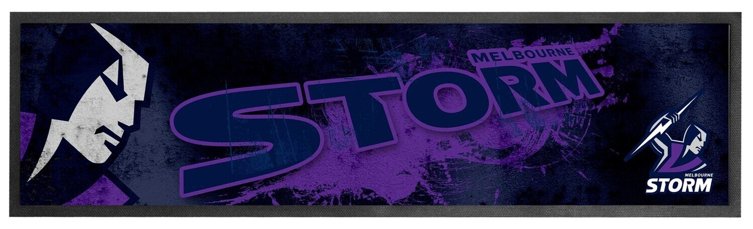 Official NRL Melbourne Storm Bar Runner. What better way to jazz up your bar with this Official NRL Melbourne Storm Bar Runner. The design features the team song so you can chant the words over a couple after their victory. Consists of non slip rubber underneath the bar runner to prevent it from sliding across the table. Product name: Official NRL Melbourne Storm Bar Runner NRL team: Melbourne Storm