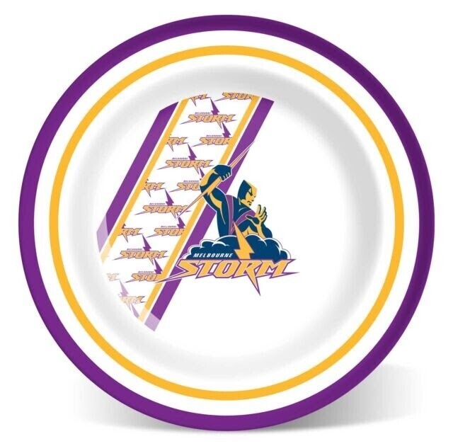 Official NRL Merchandise Melbourne Storm NRL Melamine Plate; - 20cm Melamine Plate - Team logo design on plate - Hand wash only (not dishwasher safe) - Not microwave safe - Official NRL Merchandise