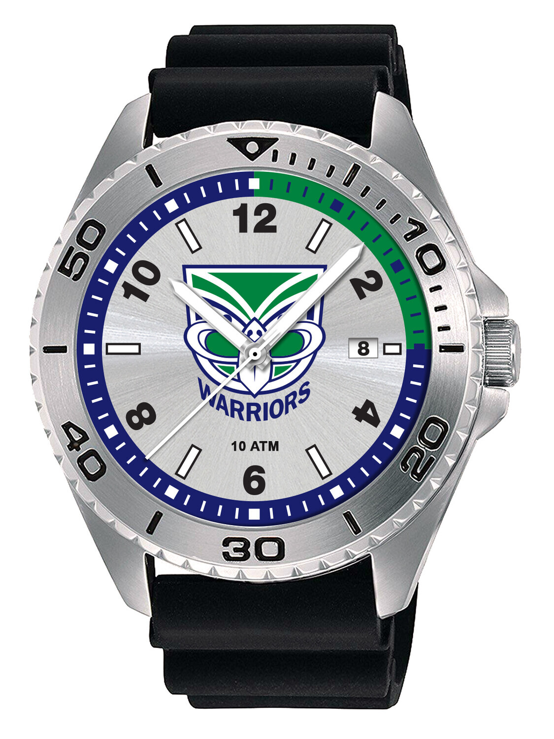 Official NRL New Zealand Warriors NRL Try Series Watch Specs: 100m water resistant , Rubber Band , Stainless Steel Case , Unidirectional bezel ,Japanese Quartz movements ,Luminous 3 Hands ,Date feature at the 3 o?clock position ,12 months warranty