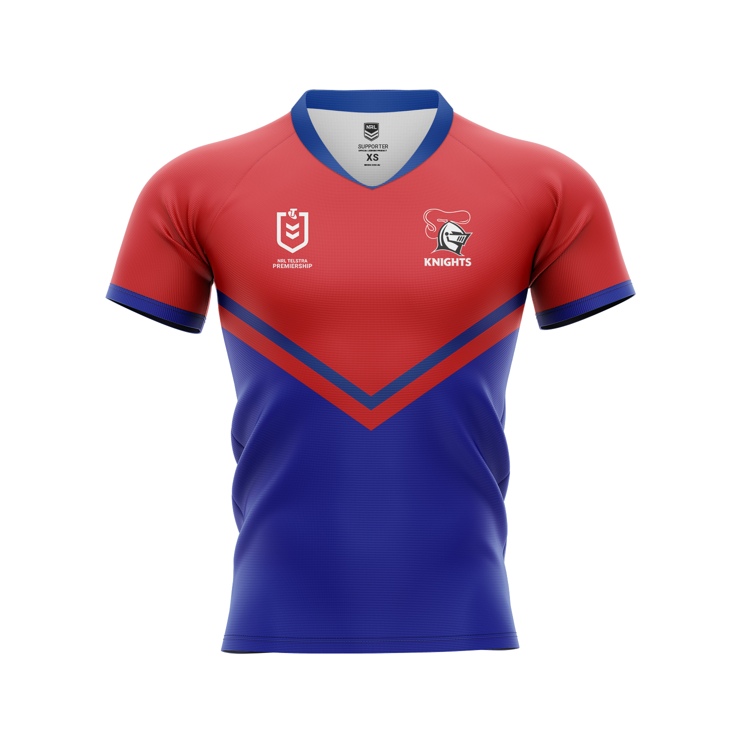 Official NRL Newcastle Knights NRL Adult Jersey Officially licensed NRL merchandise -Rounded half collar and "V" neck -Sublimated NRL and club logos -Neck line widens to be gently pulled over adult heads -Latest Team Design -Short sleeves -Fabrication: 100% polyester size-chart-T51.html