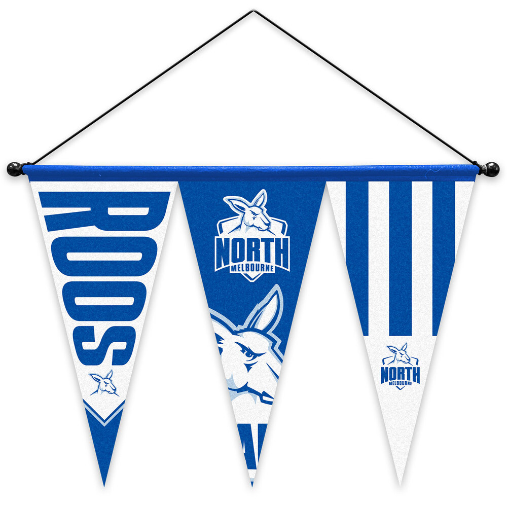 Whether you're celebrating a big win or proudly displaying your lifelong loyalty, the North Melbourne Kangaroos Set of 3 Pennants is a must-have piece for any dedicated supporter.