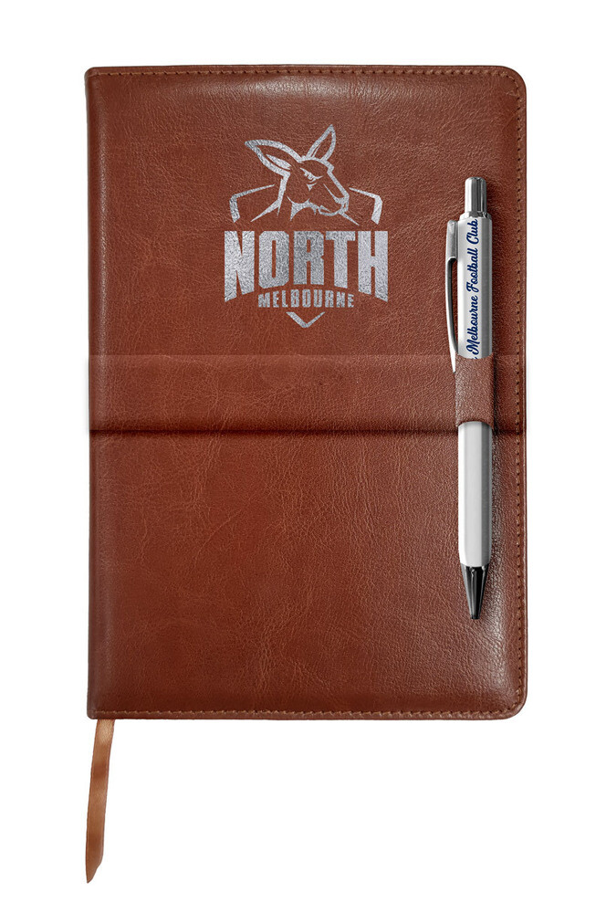 North Melbourne Kangaroos Logo Leather Notebook with Pen Specs