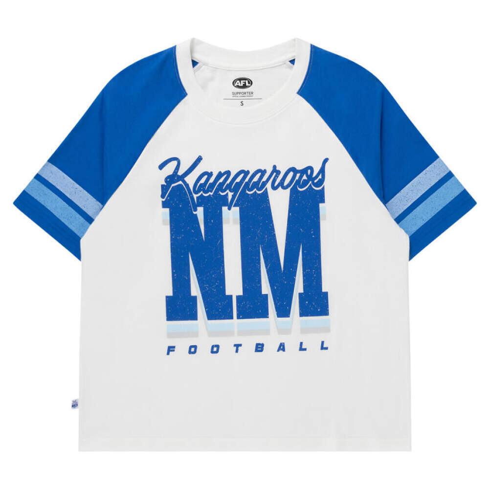 Show your colours in style with the North Melbourne Kangaroos Womens 2-Tone Raglan. Designed for comfort and everyday wear, this classic raglan tee blends sporty detail with unmistakable team pride.