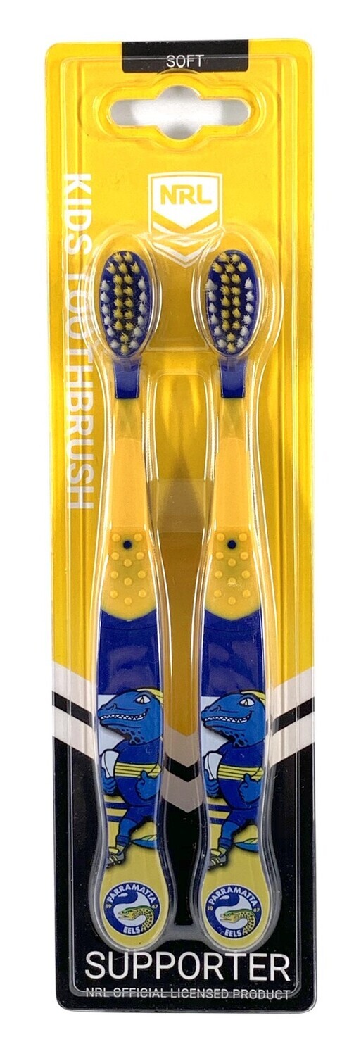 Official NRL Merchandise Parramatta Eels NRL Mascot Kids Toothbrush - 2 Pack; Keep your teeth clean with the Official NRL Toothbrush - 2 Pack. Excellent Quality - Superior Construction! Recommended and used by The National Rugby League and Australian Dentists. Suitable for Adults and Children Age 6+3 in 1 Cleaning System: TEETH, TONGUE & GUMS. Dentists Recommend replacing your toothbrush every 3 months. Support Your Club Every Morning & Every Night!