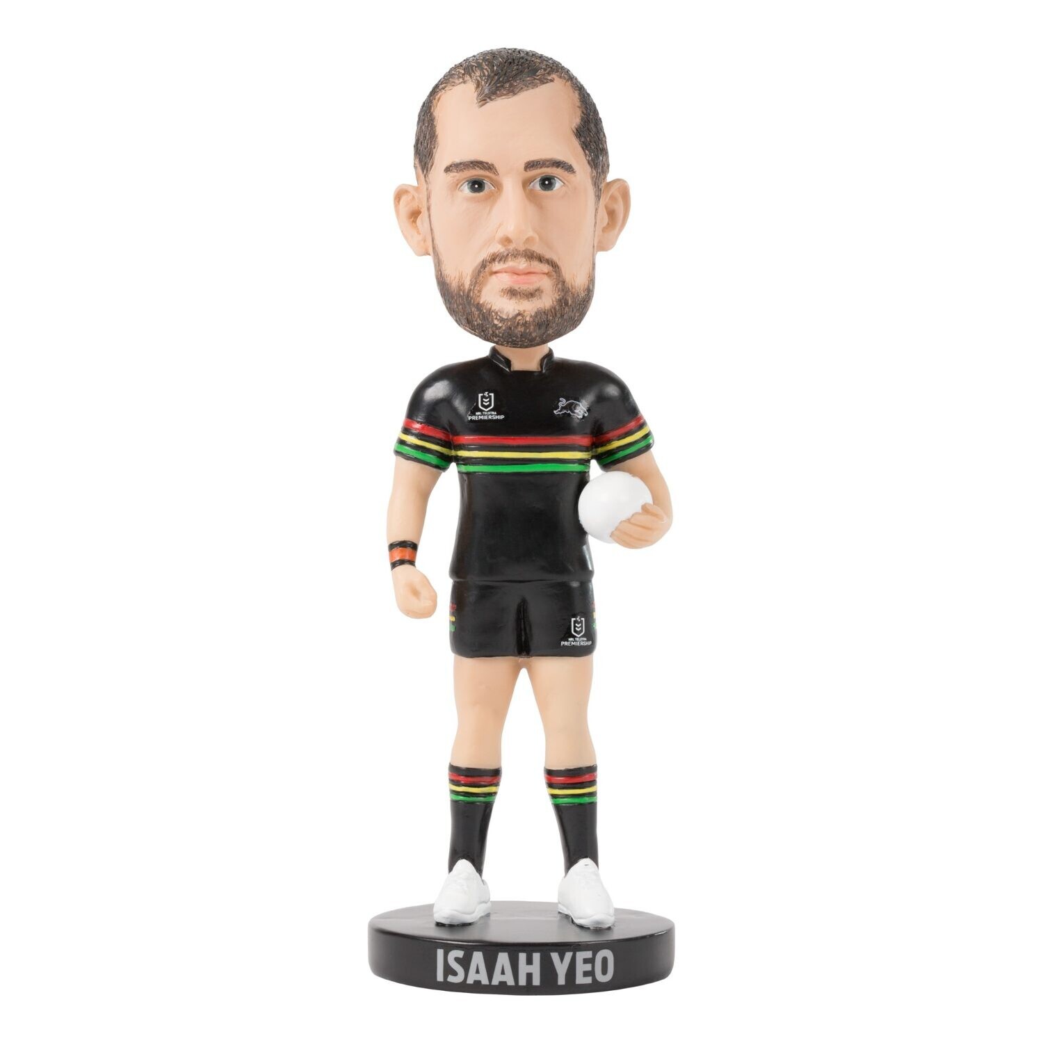 Bring the relentless work rate and inspirational leadership of the Panthers' co-captain right to your desk or fan cave with the official Penrith Panthers Isaah Yeo Bobblehead. Standing proudly at 18cm tall, this finely detailed resin mold captures the premier lock in his iconic black Penrith playing kit, complete with the football in hand. It is the ultimate tribute to one of the NRL's most hardworking and respected champions.