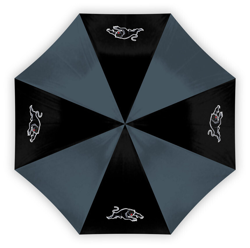 Official NRL Merchandise Penrith Panthers NRL Compact Umbrella ; - Compact Umbrella with team logo and colours - Protective sleeve wth team logo and colours - 60cm in Length, W17cm Black Metal Shaft - Swing ticket packaging - Official NRL Merchandise - Inner 2, Outer 24