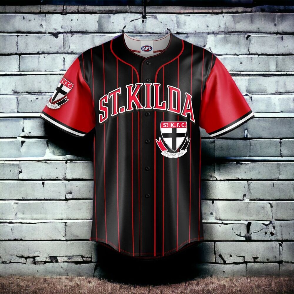 Be the ultimate trendsetter with the captivating St Kilda Saints Slugger Baseball Shirt. This premium piece combines classic ballpark aesthetics with modern athletic performance, making it the perfect choice for fans who want to stand out from the crowd.