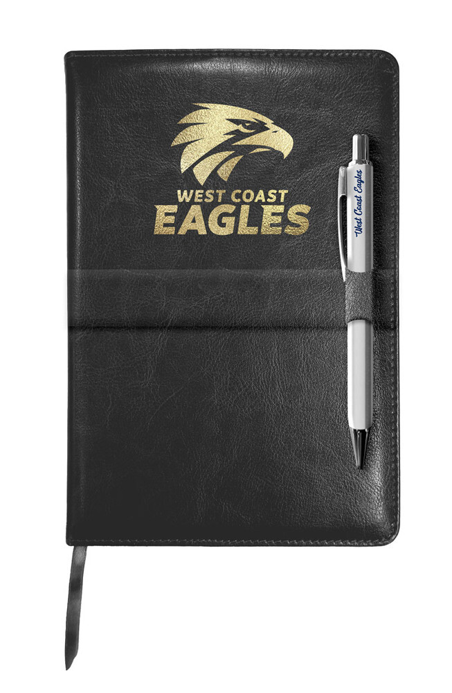 West Coast Eagles Leather Notebook with Pen Specs