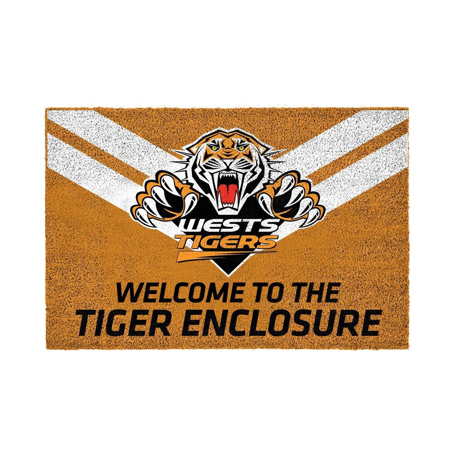 Official NRL Merchandise West Tigers Doormat; PVC Backed Doormat -Team logo design -H40 x L60cm -Header card with hanger packaging